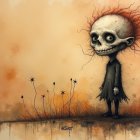 Prompt: "Ghouls go haunting, Paul Klee James Jean Anton Pieck Erik Johansson Charles Addams A cartoon resident is a optimist , skinny, disheveled, shaggy, old lady with crazy hair, counting on happiness. Caricature. Like a child's drawing. Minimalism, simplicity, charcoal drawing, whirlwind of colors, red and brown soot, sketching, bleached background, grunge, alcohol ink, play of light and shadow, quick sketch, unusual horror, watercolor, dark art"