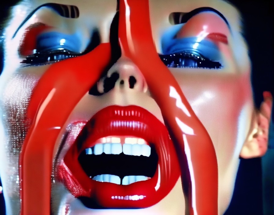 Vividly Colored Abstract Humanoid Face with Exaggerated Features