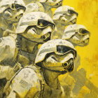 Surreal Crowd of Glossy Yellow Anthropomorphic Figures