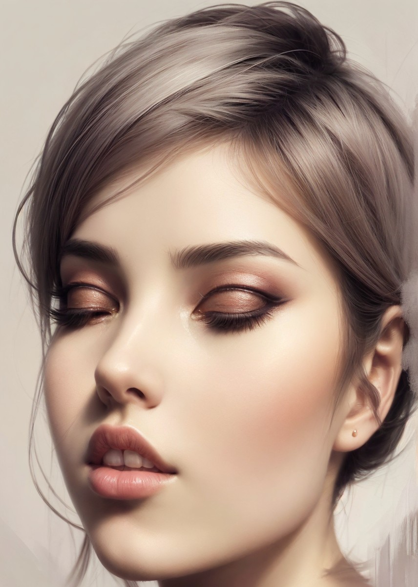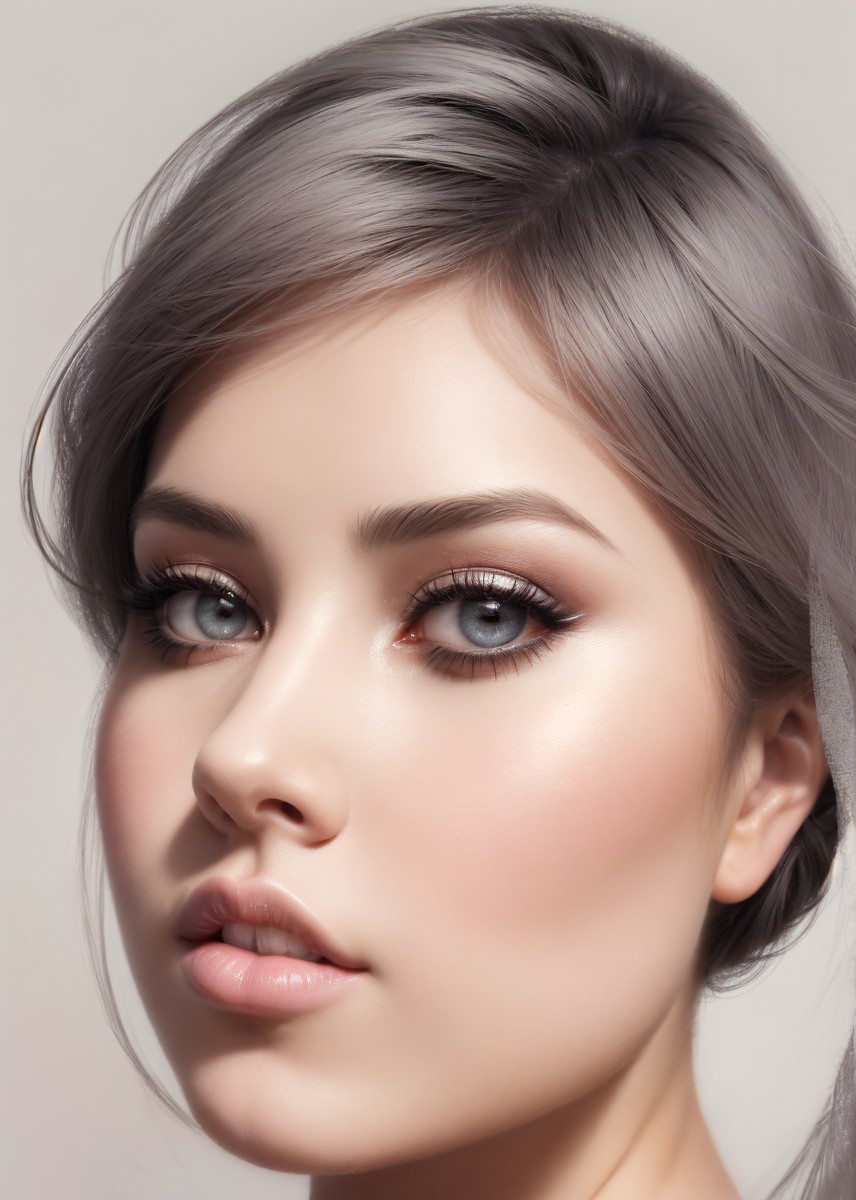 Prompt: Fantasy portaiture of muscular enchantress,, blurry upper body portrait in gouache, stacked-up perspective, round bioluminescent eyes, triadic color scheme silver grey beige, softened charcoal textures, pastel colirs, hues, minimalist abstract art, serene background, blurry delicate brushstrokes, The background is a smooth gradient transitioning from a sunlit grey tone to a deep nocturnal black, encapsulated within a circular aura that fades softly into a black void. 3d effects 1.8, ambient occlusion 1.5, anisotropic filtering 1.7, raytraced shadows 1.2, sublime, mood, eroticism, seductive, quilling, folded paper style 1.6,