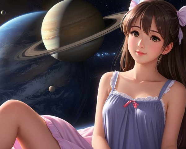 A captivating anime character embodies the essence of nature, radiating tranquility and strength. Adorned with lush greenery and floral motifs, she protects the earth with grace and wisdom.