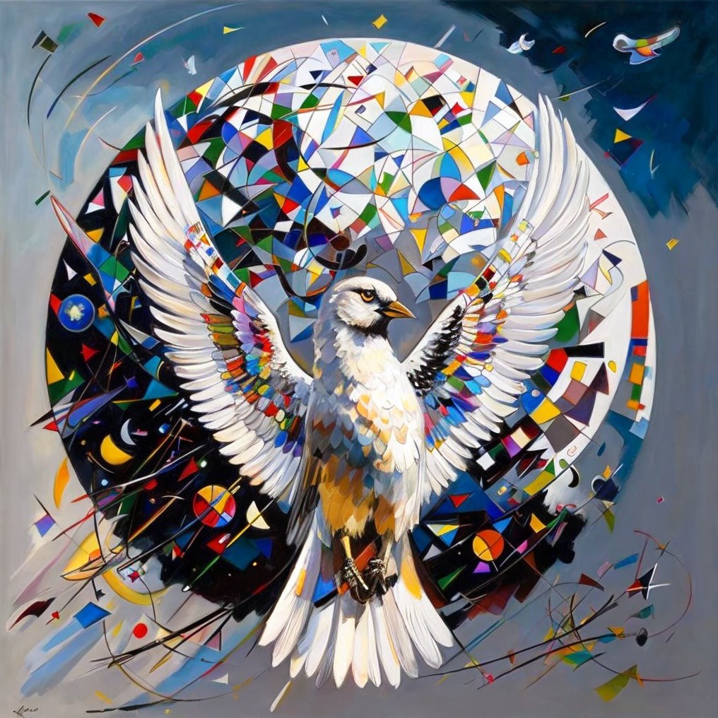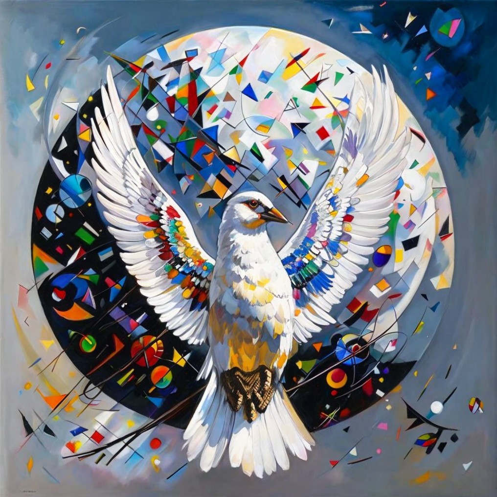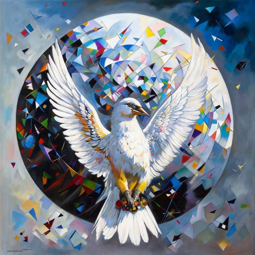 Prompt: "A resting white dove, with hands for wings. The hands reach below the dove and support/hold a globe of the world.