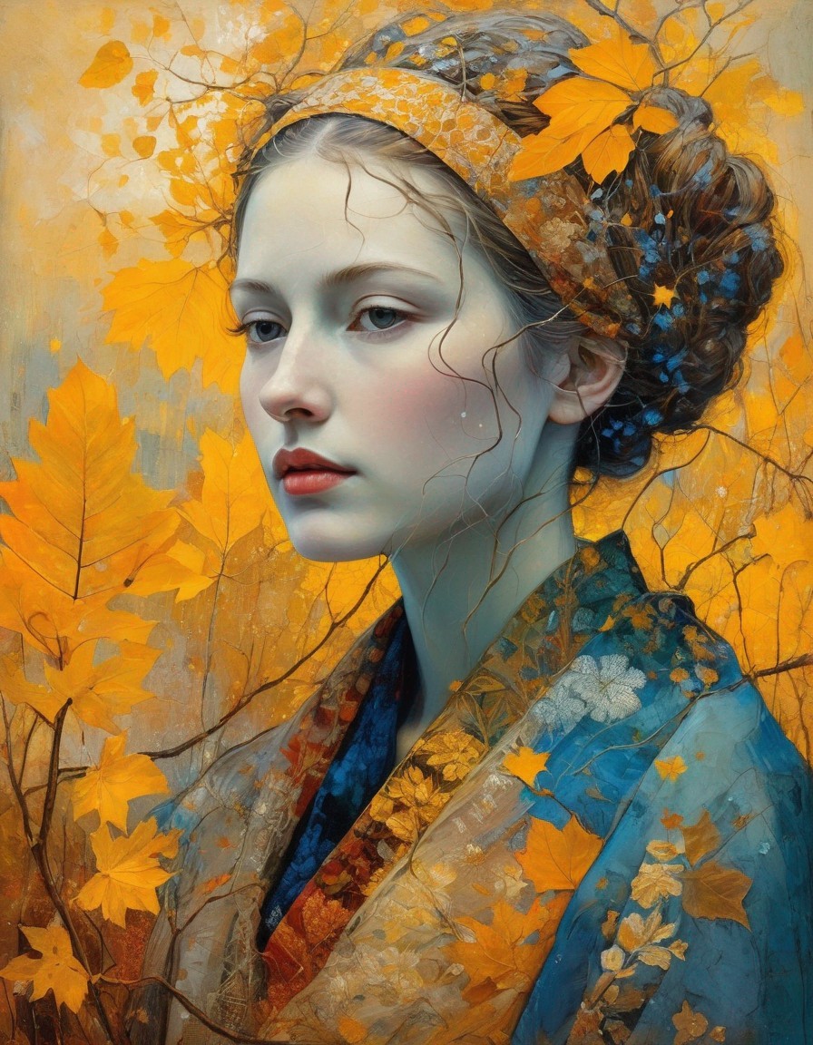 Female portrait painting in profile, pasty tempera on old worn canvas, beautiful mind journey. By Christoffer Relander, Dan Mountford, Van Gogh, Yossi Kotler, Klimt, Victo Ngai, Naoto Hattori. Amazing multiple exposure optical illusion, mixed media, surrealism, otherworldly. Impressive old trees, vines, roots, starry night sky, mountains, rivers, in the clouds, storybook illustration, by Susanne, landscape portrait, perfect face, enigmatic, dreamlike, beautiful lighting, beautiful vibrant colors, ultra detailed seamless blending of two scenes.