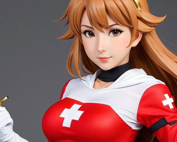 A vibrant anime character dons a stylish silver bikini with a strapless design, complemented by a flowing skirt. Her playful expression and colorful hair add to her lively, youthful charm.