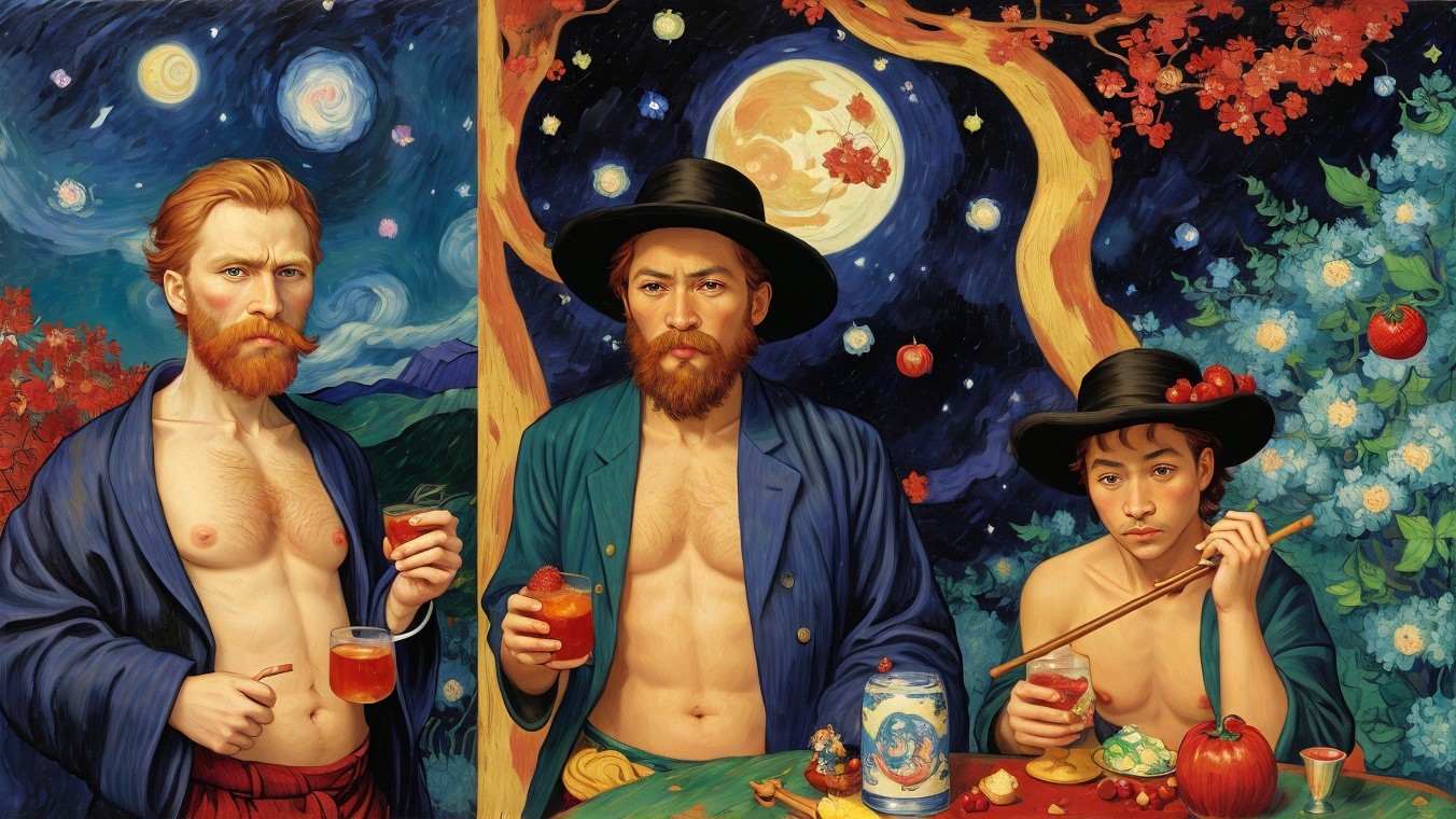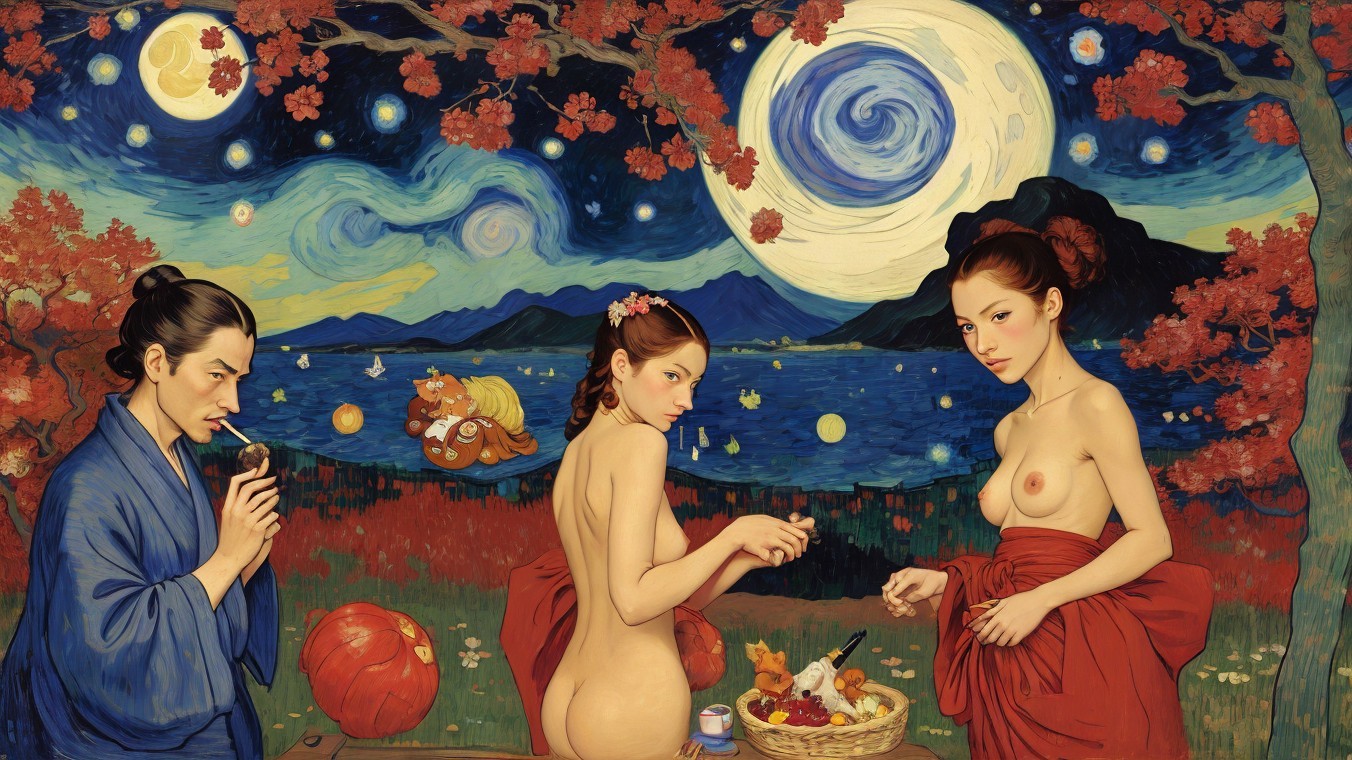 + Prompt:So I stood with a knot in my stomach and I gazed at that terrible sight of two youngsters concealed in a barrel smoking monkberry moon delight.
