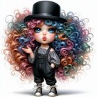 Whimsical Doll with Blue and Purple Hair and Lollipop