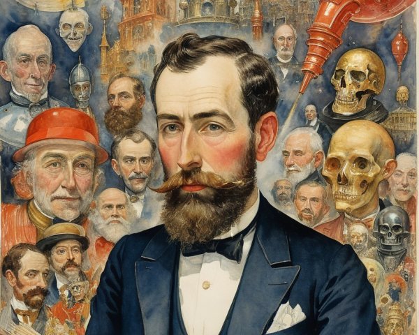 A black and white portrait of a man in a leather jacket, gazing intently at the camera. The city skyline is visible in the background, showcasing tall buildings and urban scenery.
