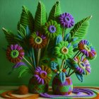 A whimsical tree adorned with vibrant, circular foliage in a spectrum of colors. The background features soft gradients, creating a surreal, dreamlike atmosphere. Nature reimagined artistically.