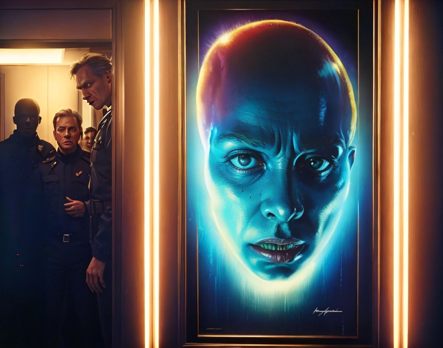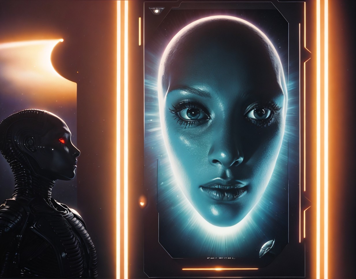 Close-Up of Futuristic Humanoid Robot with Glowing Eyes