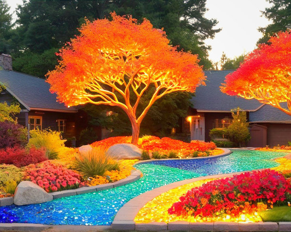 A whimsical illustration of a girl in a forest with a vibrant tree, colorful birds, butterflies, and flowers against a starry backdrop.