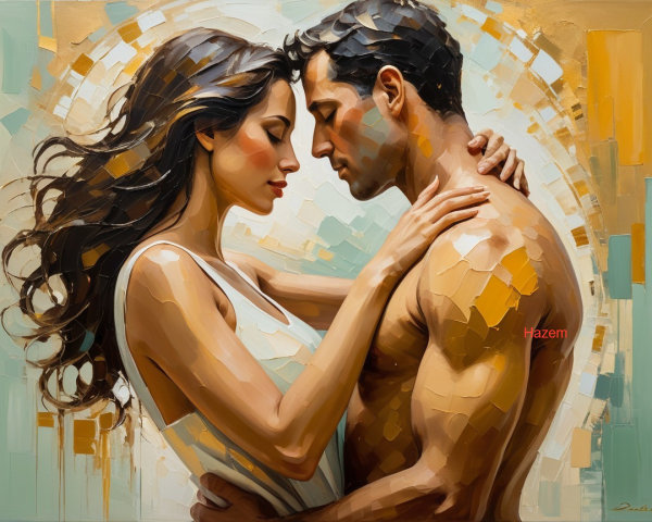 A stylized male figure stands with vibrant, swirling colors radiating from his body, resembling flowing energy or natural elements, set against a layered, abstract background.