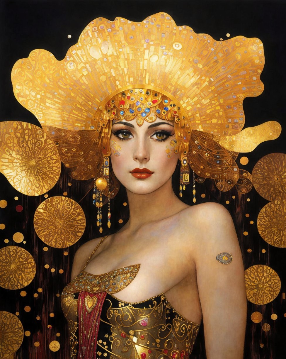 + Prompt:Klimt paint affiche for Moulin Rouge spectacle in Paris, soft watercolor extra water in Art Deco by Annigoni, Egon Schiele, Milo Manara, Botticelli, Catrin Welz-Stein, Jean Metzinger, Klimt, perfect eyes, perfect handsface, highly detailed, complementary colors, hyper detailed. Watercolor and ink splatter, dynamic pose, dark blue background, unreal engine, greg rutkowski, loish, rhads, beeple, makoto shinkai and lois van baarle, ilya kuvshinov, rossdraws, tom bagshaw, alphonse mucha, global illumination, detailed and intricate environment
