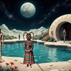 Dreamy Landscape with Starry Sky and Tranquil Pool