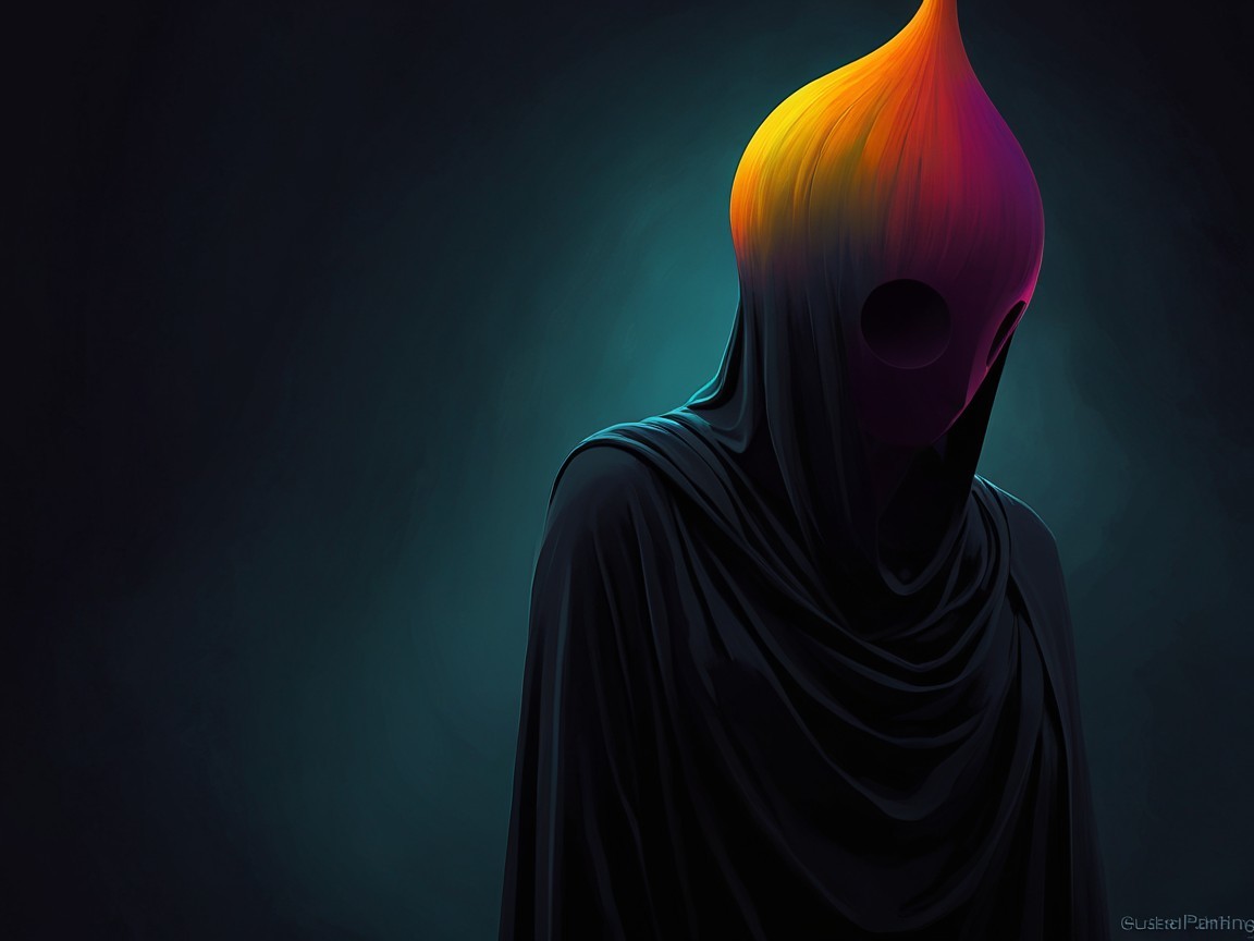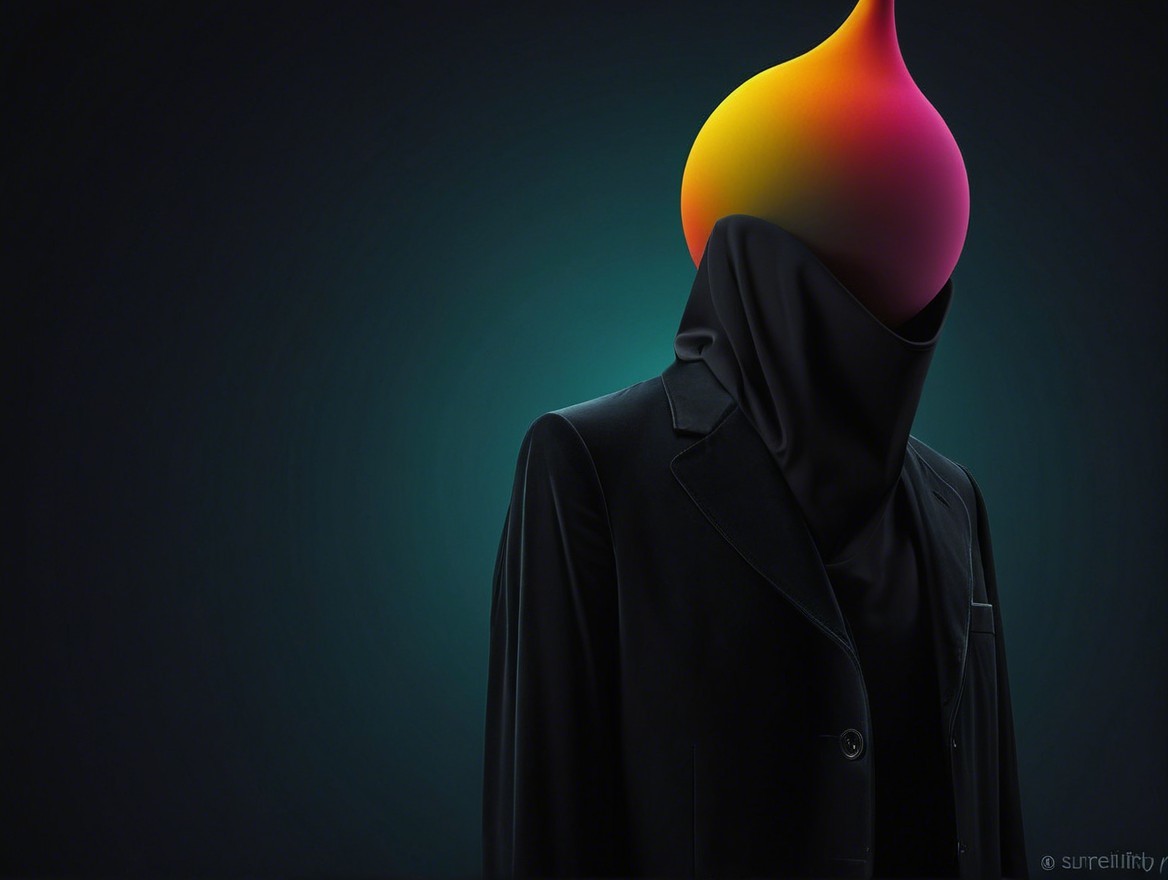 Mysterious Figure in Black Suit with Colorful Head
