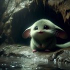 Furry Creature in Dimly Lit Cave by Glistening Puddle