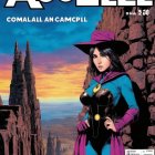A futuristic female figure stands confidently in a neon-lit cityscape, wearing a sleek, high-tech suit with a glowing emblem. The bold colors and digital ambiance create an immersive cyberpunk atmosphere.