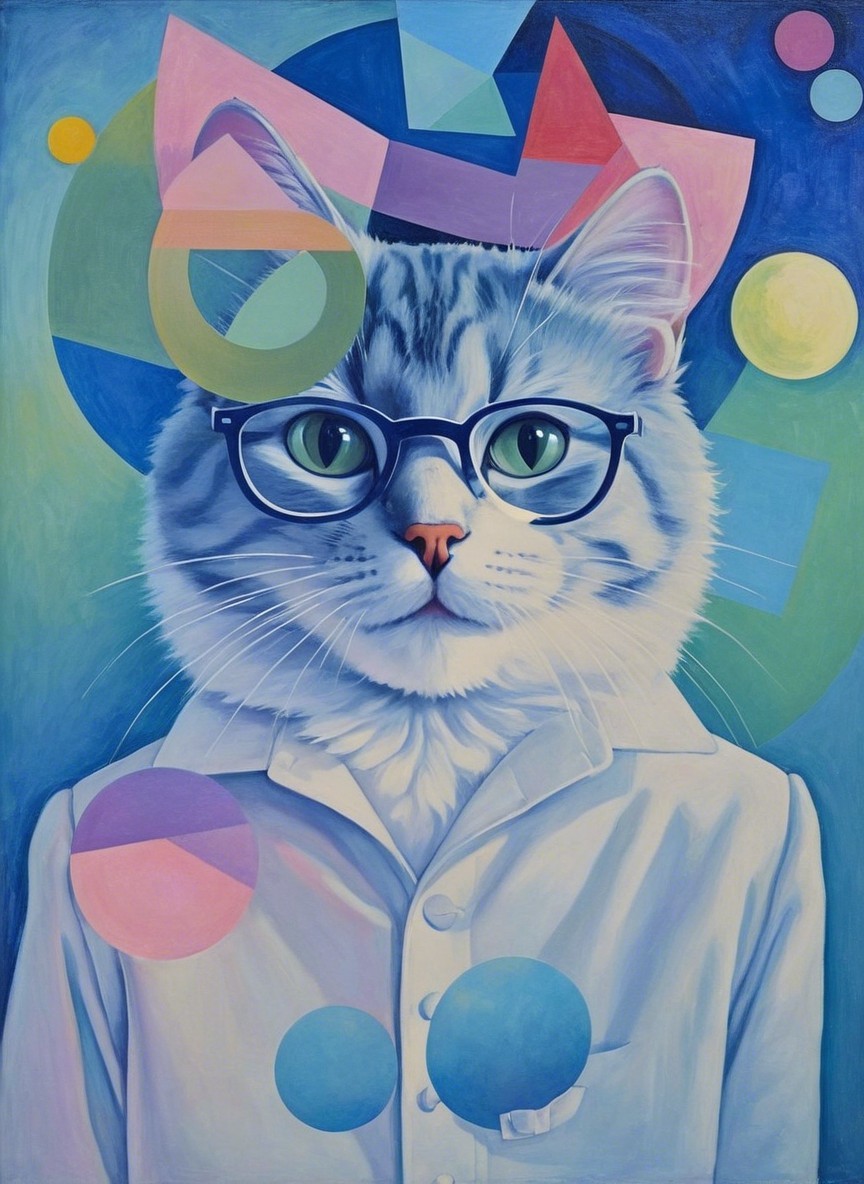 + Prompt:Schrödinger‘s cat. The mathematical idea in the arts is told, heard, deciphered. Aesthetic qualities of theater, architecture, music, literature, painting are attributed to geometrical relations of their components.