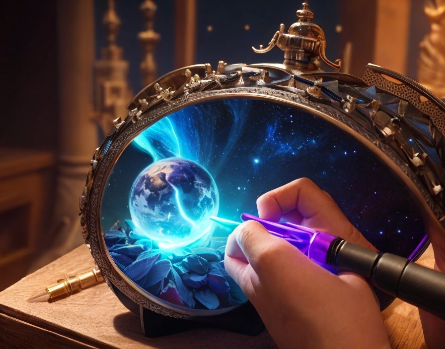 Wizard in Blue Cloak Conjuring Blue Magical Energy with Wand
