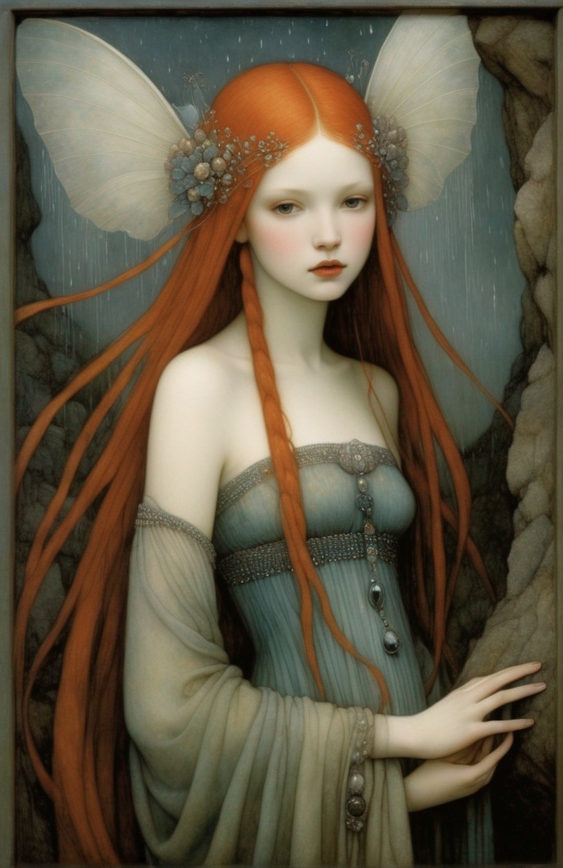 Oreads, Misty, rain and foggy, nymph of grottos and caves, by Nicoletta Ceccoli, by Kay Nielsen