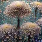A serene forest scene in autumn, featuring a tall tree with vibrant orange leaves. Surrounding bushes display crisp white and orange foliage, while soft light filters through the misty background.