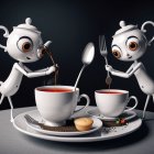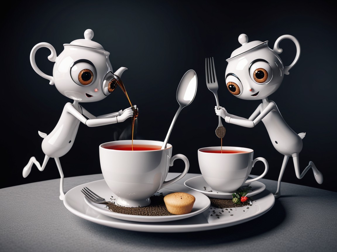 Prompt: I ma such a bad cook that the dishes with big eyes are holding hands with the forks with there skinny legs and the tea cups are running away with a tea bag
