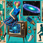 Vibrant Collage of Retro and Futuristic Elements