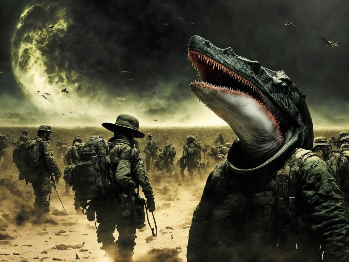 Soldiers in Combat Gear on Chaotic Battlefield Scene