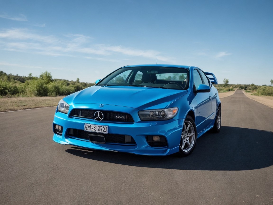 Sleek Blue Sports Car on Open Road with Smoke Trails