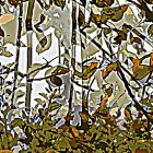 A serene landscape features two figures seated under trees with autumn foliage, overlooking a calm lake. The warm colors evoke a peaceful, reflective moment in nature.