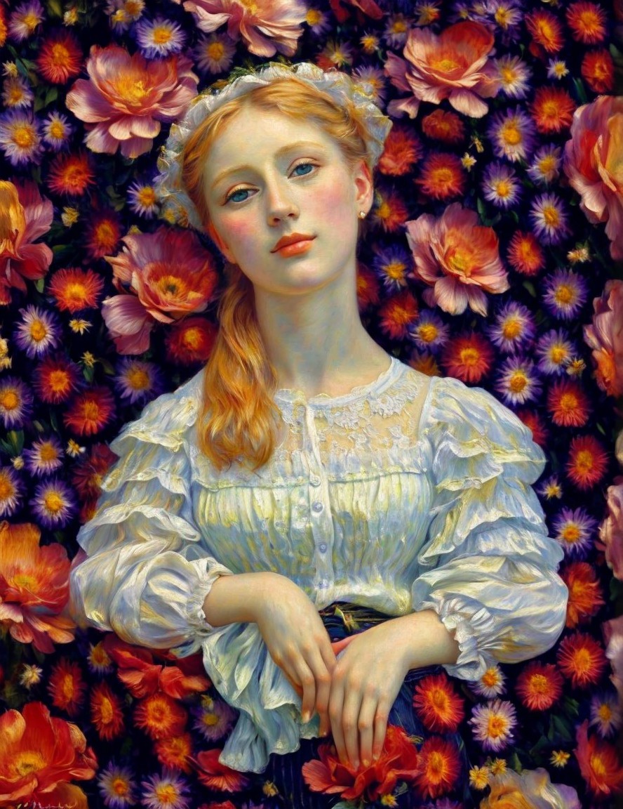Beautiful lady impasto painted by Renoir van gogh and Renoir