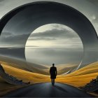 A surreal scene depicts a woman lounging on a checkerboard field, cradling a soccer ball, with a towering wave crashing in the background, while a player runs in the distance.