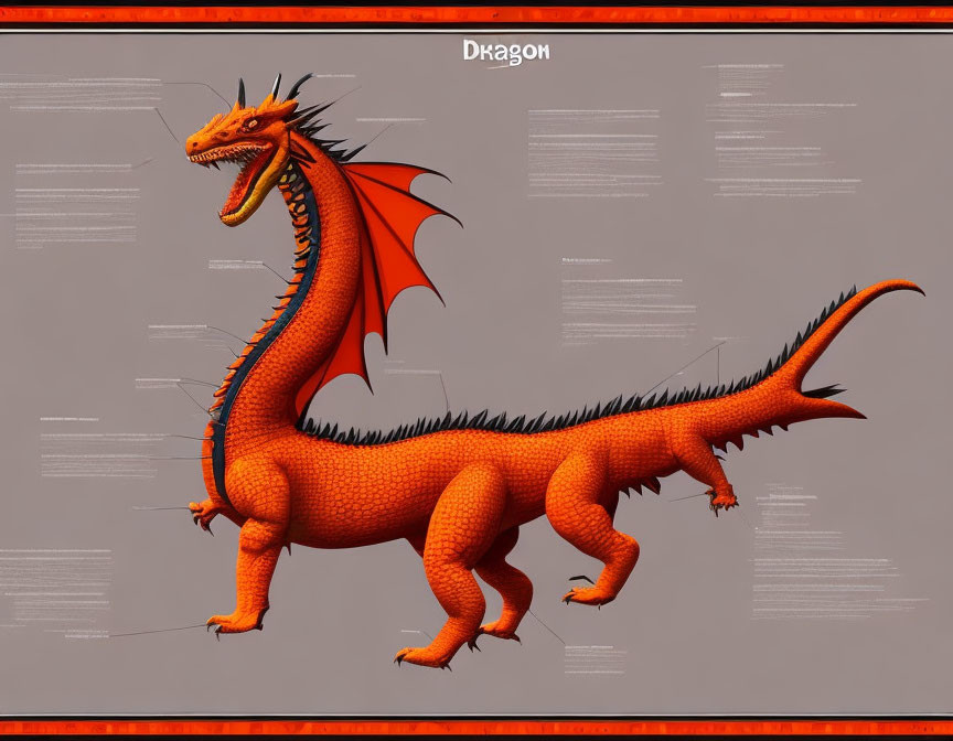 Vivid Orange Dragon with Red Wings and Yellow Accents on Gray Background