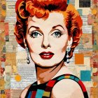 A vibrant, stylized portrait of a woman with bright red hair and bold makeup, wearing a polka-dot dress. The artwork features textured layers and colorful accents, enhancing its retro charm.
