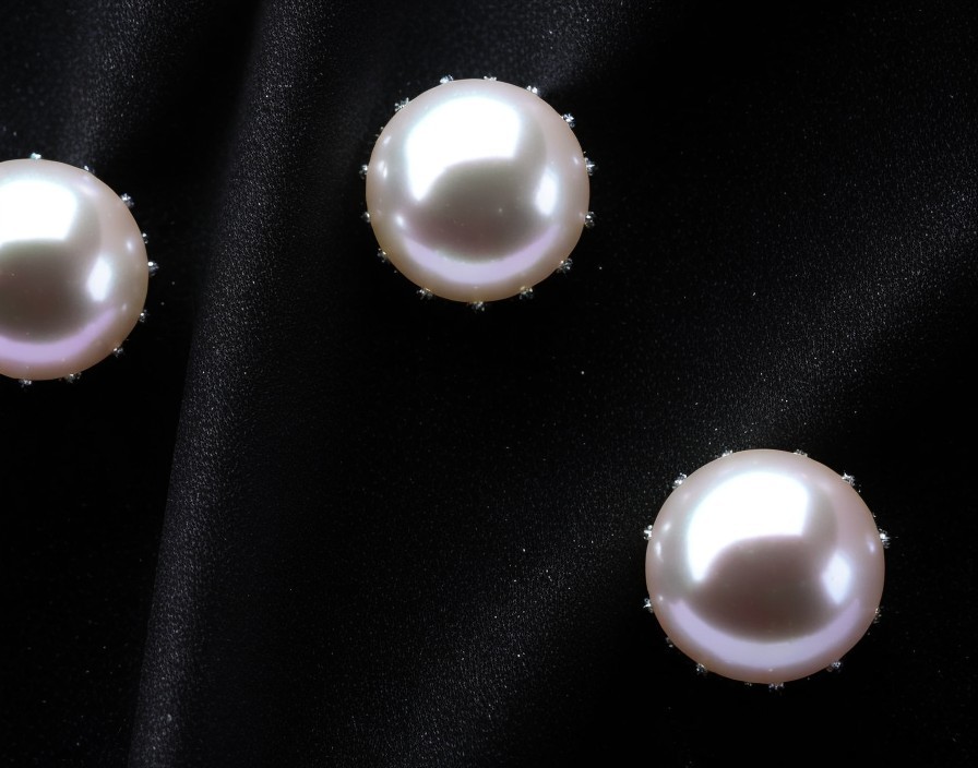 Three Pearl Brooches on Black Silky Fabric with Glittering Specks