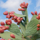 Vibrant Cactus with Reddish-Purple Fruit Against Clouds
