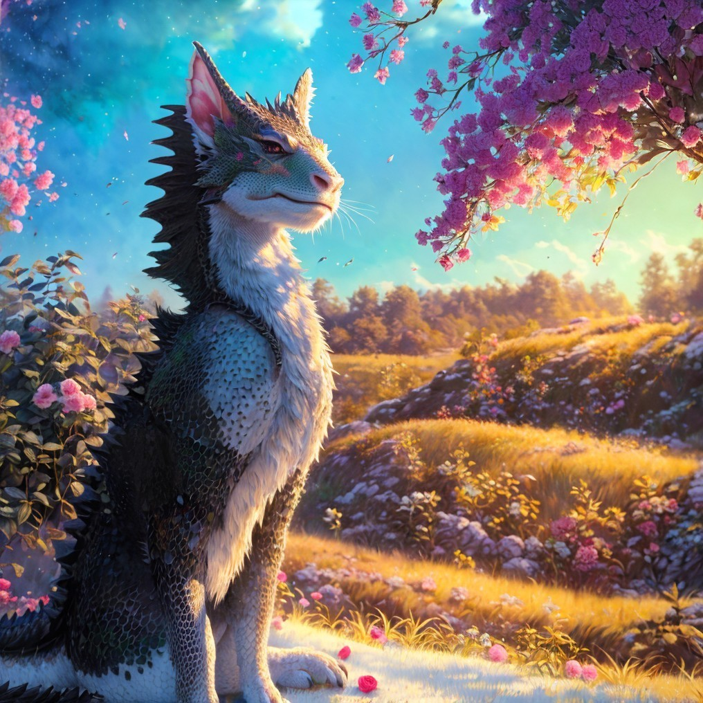 cinematic, photorealistic dynamics, young dragon with wild roses, light breeze, herbs{ hyper detailed mult-textures, semi-abstract, granular, structural textured micro-glitch Jos De Mey, textures including cross-hatching stippling pointillism, shading, stacking, Scribbling, contour lines, smudging, overlays, sgraffito, dry brushing, scumbling, impasto, frottage, collage sponging etching rubbing stenciling, array of line art styles & stacked lines + parallel running lines,}