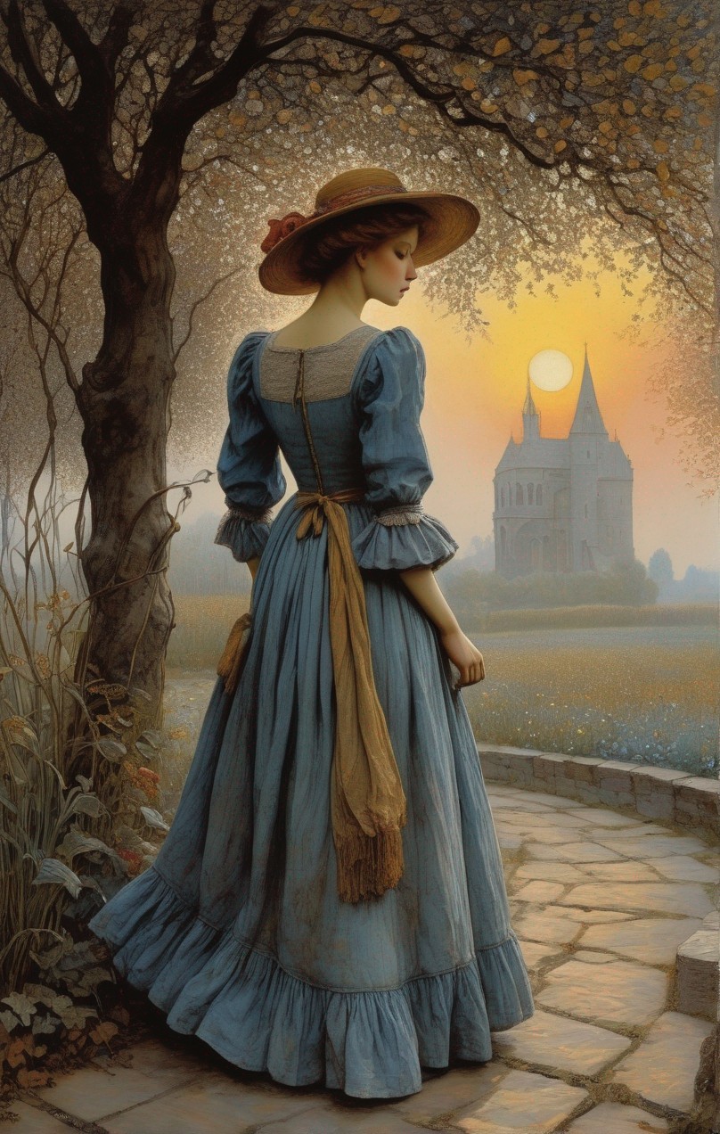 + Prompt:In the garden of my childhood, I learned to dance with shadows. The sun set early, leaving behind a world shrouded in darkness.
