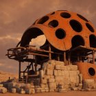 Futuristic Hollow Sphere Structure in Dramatic Landscape