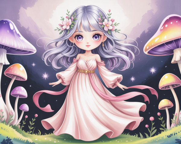 A charming anime goddess gracefully navigates an enchanting underwater restaurant, surrounded by vibrant marine life and shimmering decor, creating a whimsical dining experience beneath the waves.