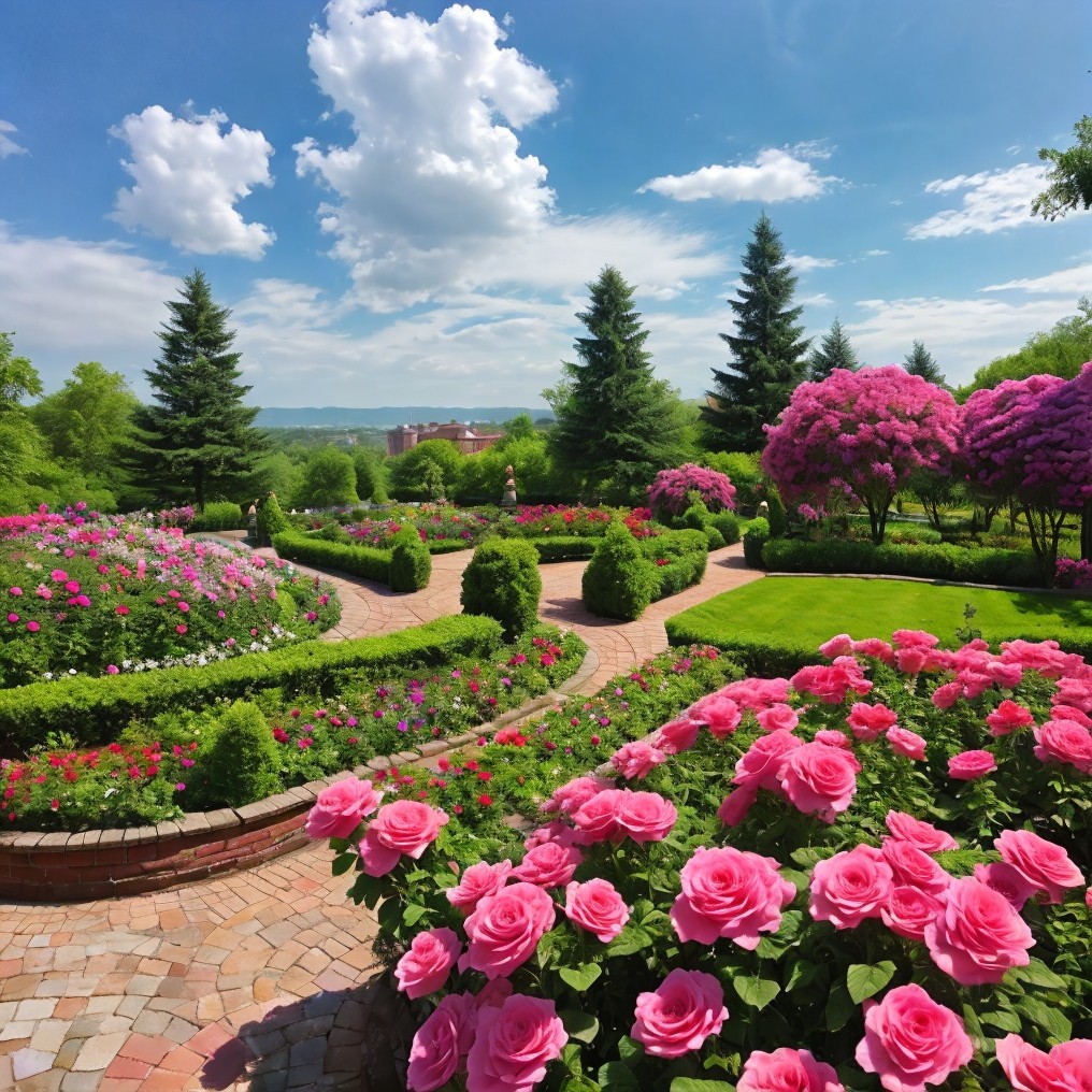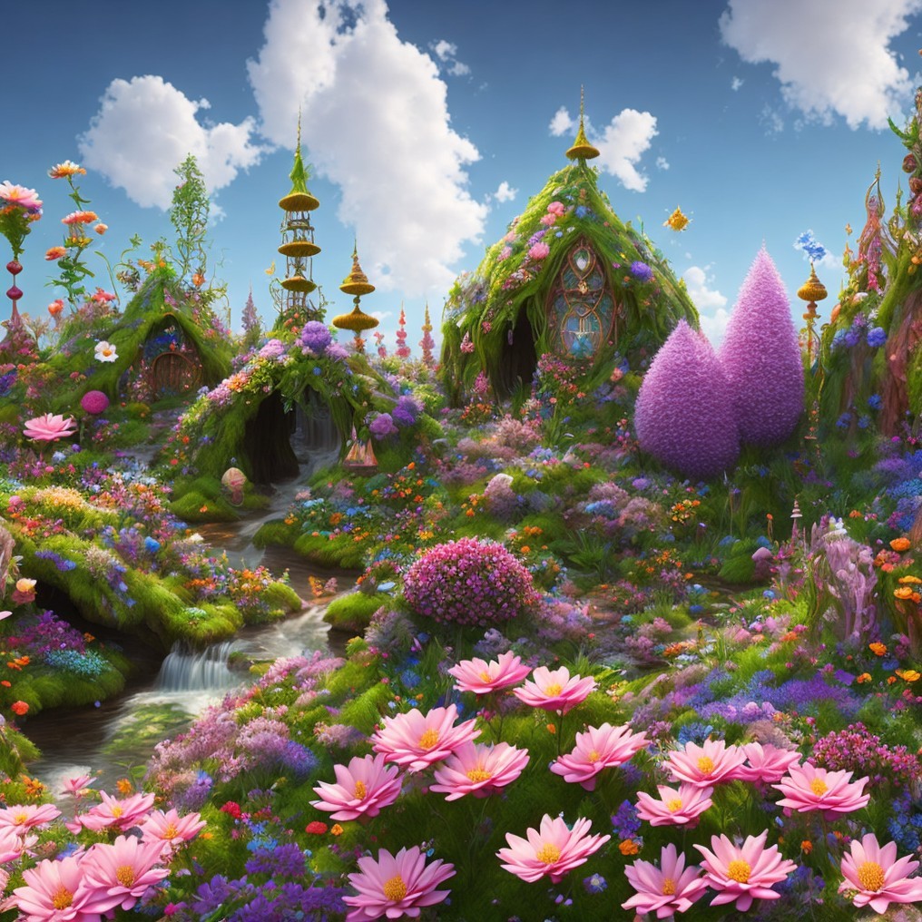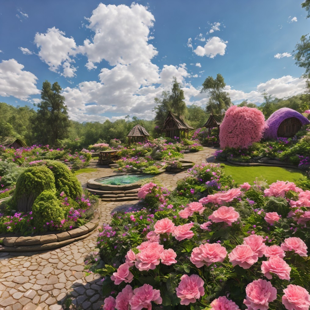 Vibrant Fantasy Garden with Cottage and Butterflies