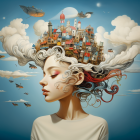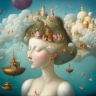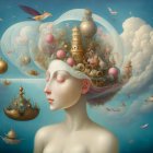 A mystical figure with flowing golden hair adorned with intricate headpieces. Surrounded by ethereal butterflies and celestial orbs, she embodies a serene and enchanting presence.