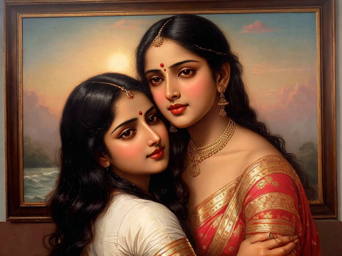 Indian Women in Elegant Cultural Attire Against Landscape