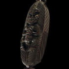 A figure cloaked in a dramatic red and black ensemble, featuring a hooded cape and skull accent. They carry a briefcase, exuding an air of mystery and intrigue against a dark background.