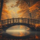 A serene autumn scene featuring a shimmering river flowing through vibrant trees adorned with red, orange, and yellow leaves. Golden light filters through, creating a tranquil and picturesque atmosphere.