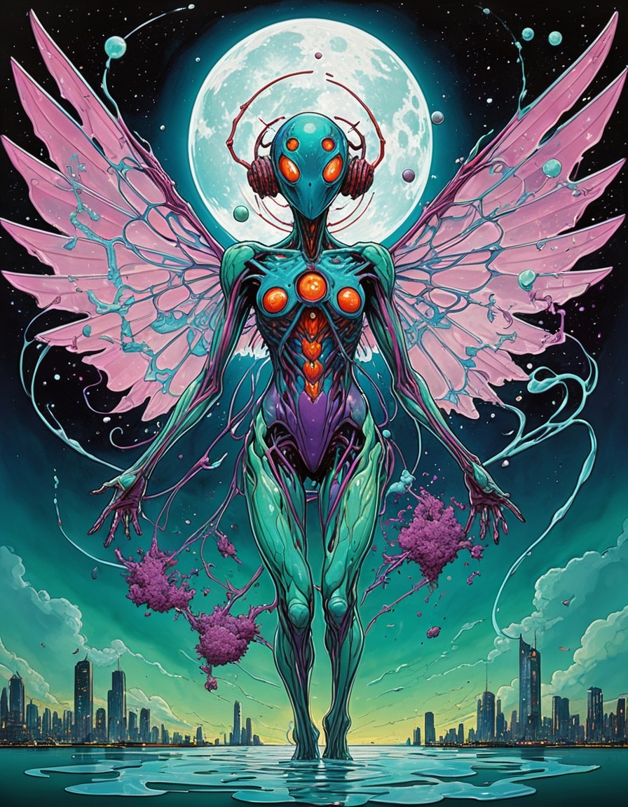 Prompt: How To Do Celuloid Enameled Transfers & Emulsion Lifts of Secret 414-818 anti-gravity superweapon Neuromancer BLAME! Evangelion Unit 01 depicted as only one art style by Alex Pardee's Doppelgangers as art by Robert Williams artist, crisis of personality of personalities as Peculiar Peca Art Art Nouveau painting by Jean Baptiste Monge hyperrealistic cutest twisted cretaure and creature as the anthropomorphic dance of love, with a giant eyeballs on it, on feet, dark fantasy occult character design, on stilts, by Otakar Sedloň, kenku, the yellow creeper, slender zombie and muscular build, makeshift houses, adorable design, nightmare fuel, flying cloud castle, looks like jerma985, scary photo, very stylized "Select your fighter" character design, lake house + lowbrow pop surrealism whimsical macabre art!