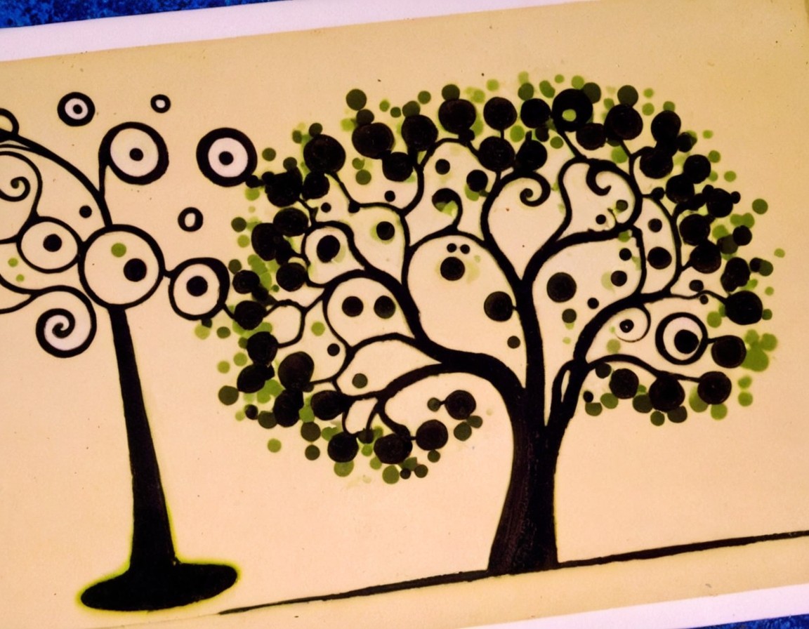 Vibrant Tree Artwork with Golden Background and Sun