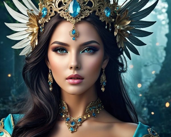Prompt: We all watch while the nail faced woman starts to swing the whip about with force in the dark room of horror. The golden goddess gets sacred when the dark clocked creatures return in the room while the nail faced monster looks at us all with a twisted smile.