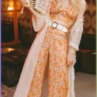 A close-up portrait of a young woman with long, wavy blonde hair and striking blue eyes. She has a natural look, with freckles and a soft expression, set against a warm, outdoor background.