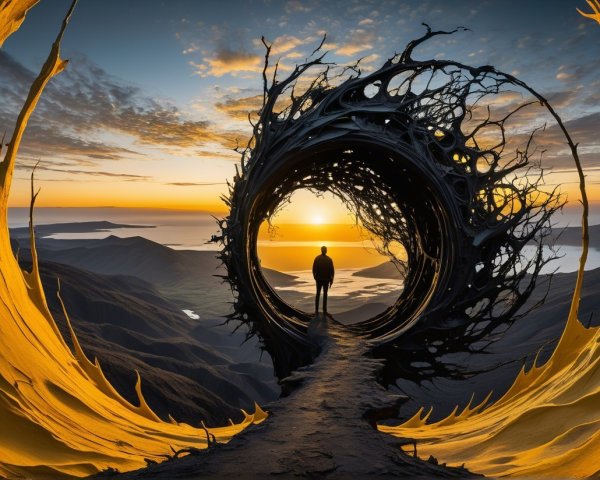 The artwork features silhouetted figures of women in elegant dresses, adorned with jewelry and parasols, walking through a golden field under a radiant sun, evoking a sense of unity and grace.
