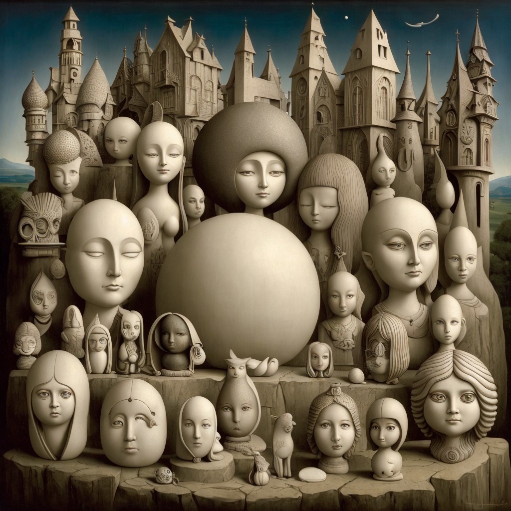 Prompt: "schrodinger's equation iℏdψ(t)dt=Hψ(t) shown as large carved stones. Naoto Hattori, Daniel Merriam, muted colors, Hieronymus Bosch, Mark Ryden, Vania Zouravliov, H. R. Giger, Aubrey Beardsley, Leonora Carrington, Caspar David Friedrich, Aubrey Beardsley"